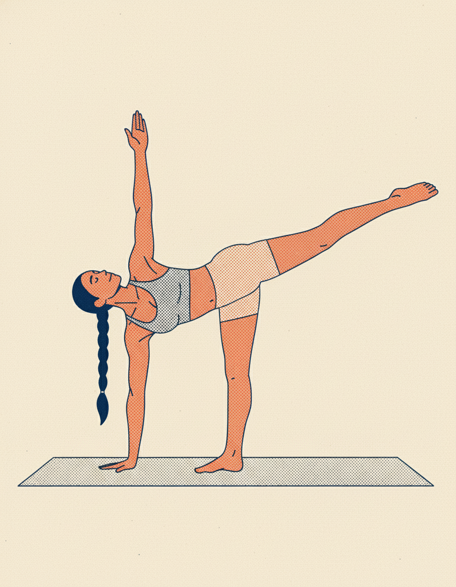 Half Moon provides a deep, active stretch for the hamstring of the standing leg. As you balance, your muscles are firing to keep you stable, which helps build strength and neuromuscular control. This pose challenges the entire back line of your body, from your calf to your glutes, improving both flexibility and stability.