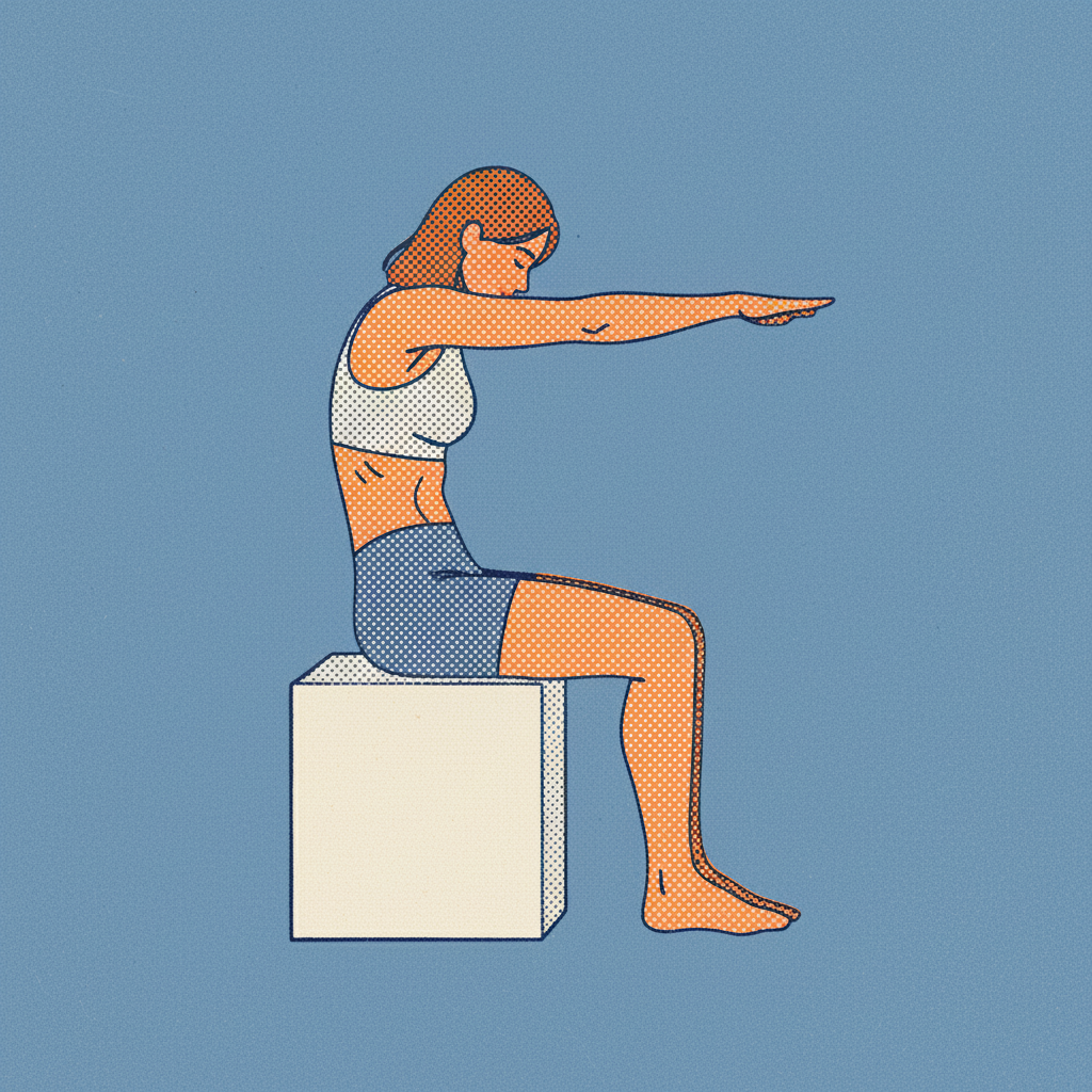 - Keep your neck long, as if you're holding an apple between your chin and chest. Your feet can remain on the floor.